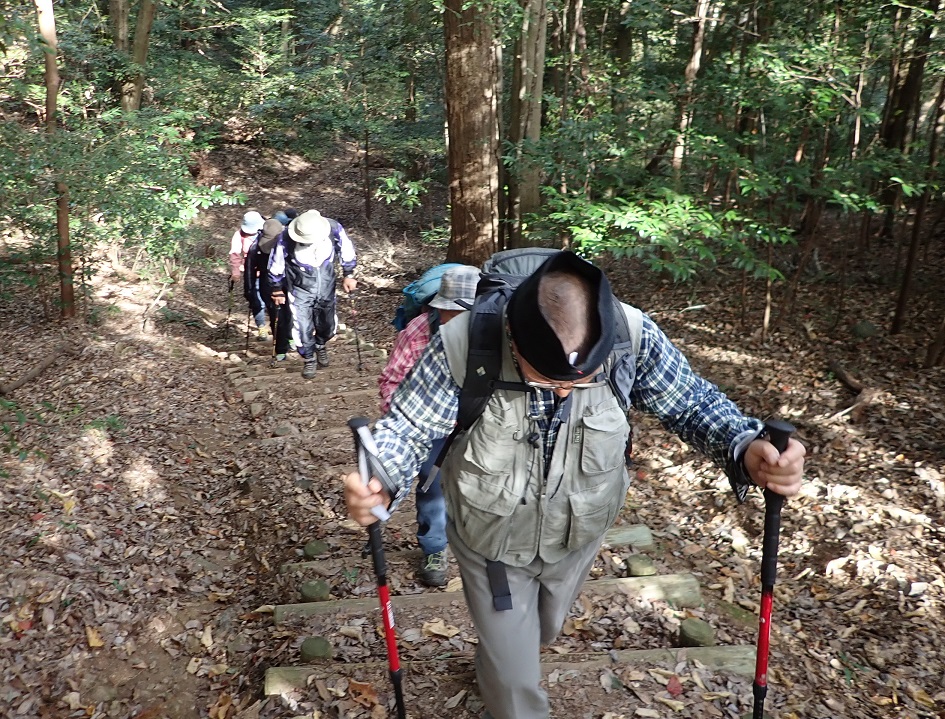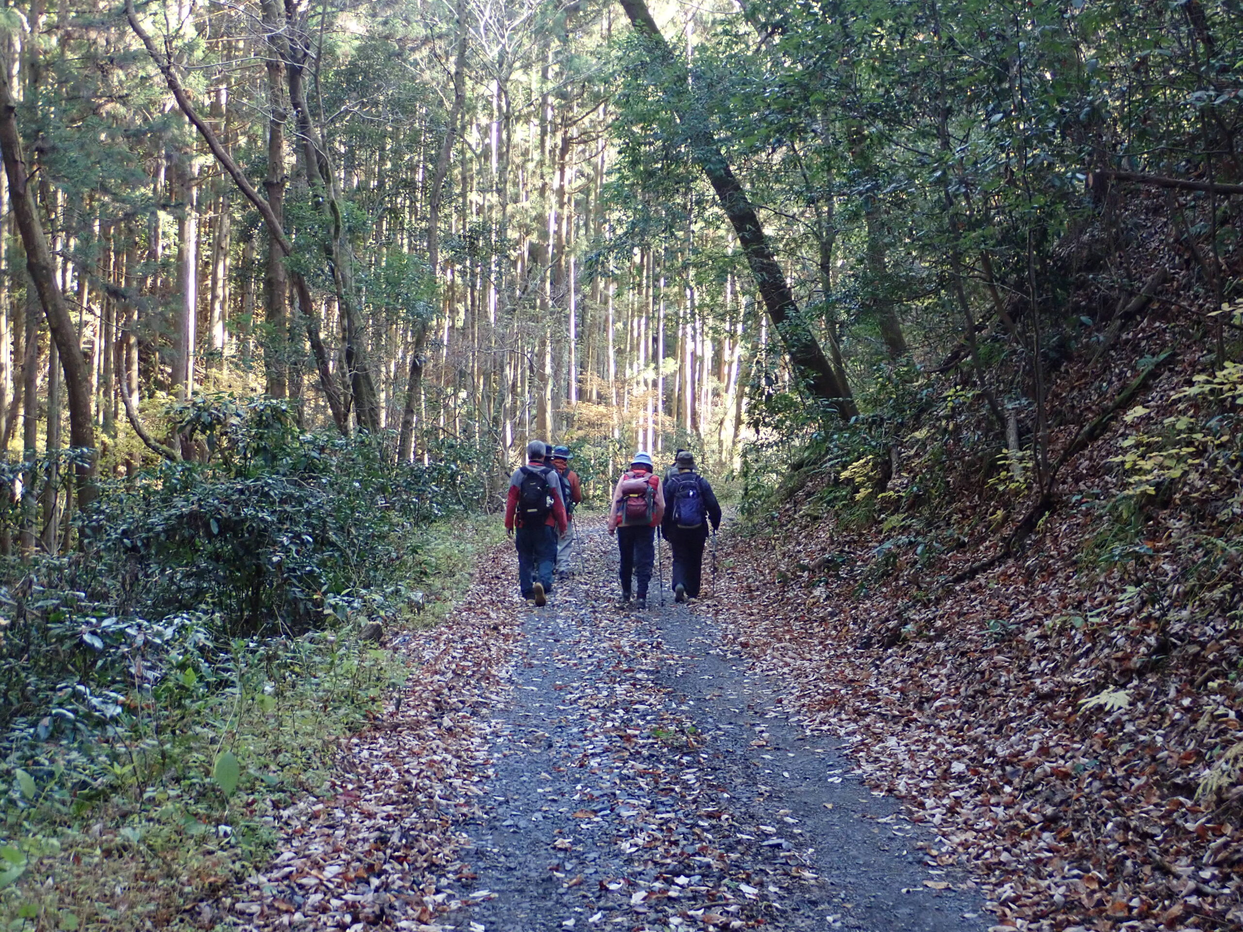 そこから,しばらくは平たんな尾根道。「鐘撞堂跡」に立ち寄ってしばらく歩くと登り下りのある道になる。