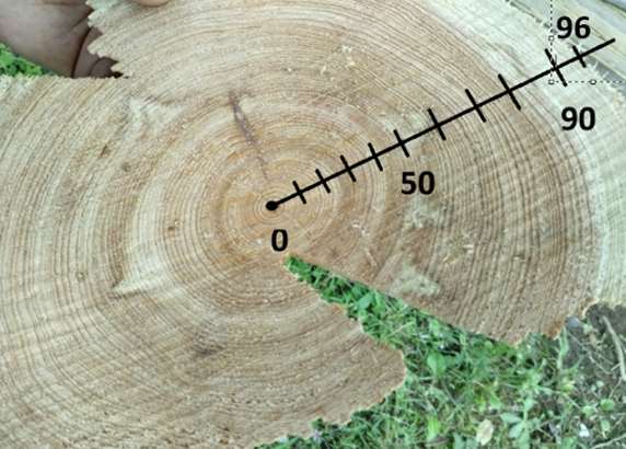 《風致地区2に植樹したクヌギ》 《風致地区4で倒れた桜の幹》