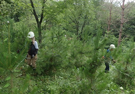 生長したアカマツの下草刈り